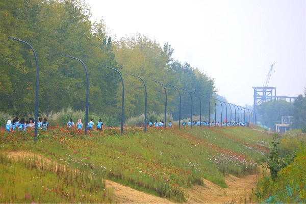 上半場(chǎng)是公司團建活動(dòng),全體人員徒步走路線(xiàn):青奧森林公園→江堤路→粉黛花田→洲島家園。(約10公里)